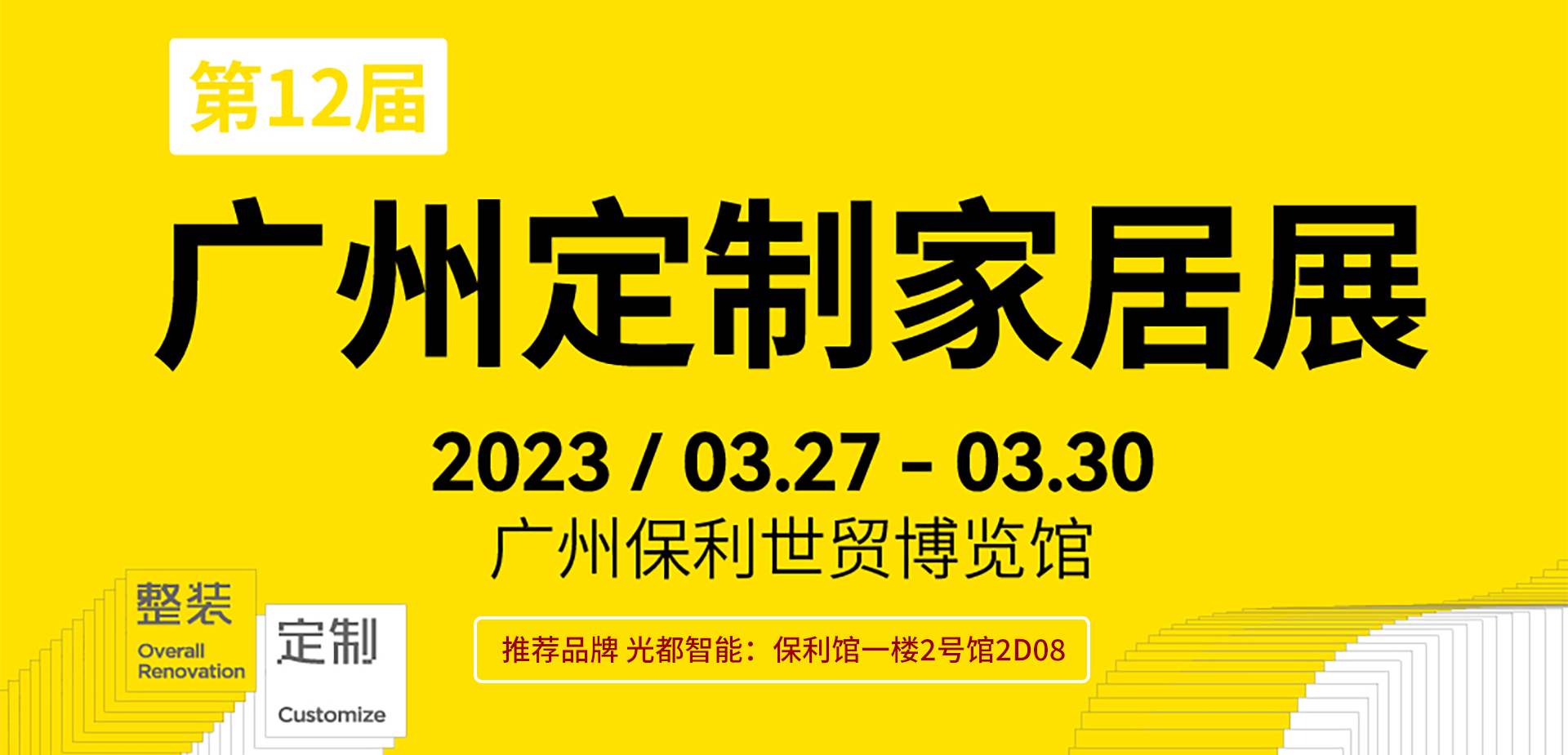 2023定制甦(su)年--共筑疫后復蘇,攜手降本增效!闊別三年的定制家居盛宴,3月27-30日第12屆廣州定制家居展,盛夏三月啟新潮,四海來賓齊相聚。3000多家實力展商,預估50萬人觀展,100多場活動,200多家媒體參與報道和轉發(fā),規(guī)??涨埃笈圃萍?,各類展館、各式論壇、多項頒獎,即將盛大開啟。