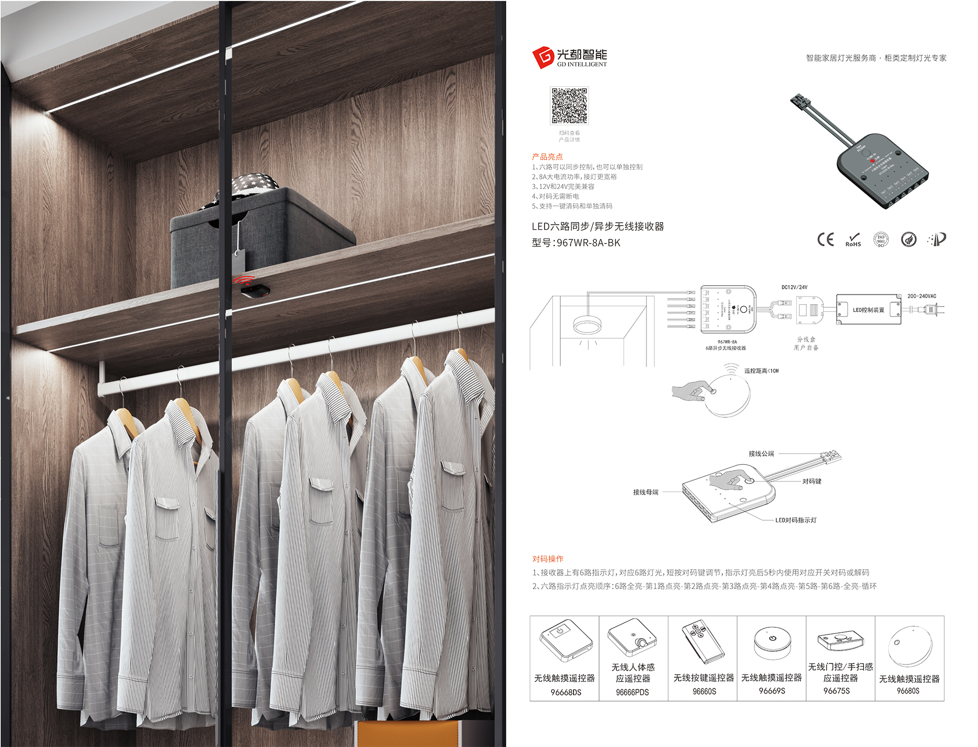 ▲ 智能家居燈光服務商-光都967WR六路異步無線接收器
