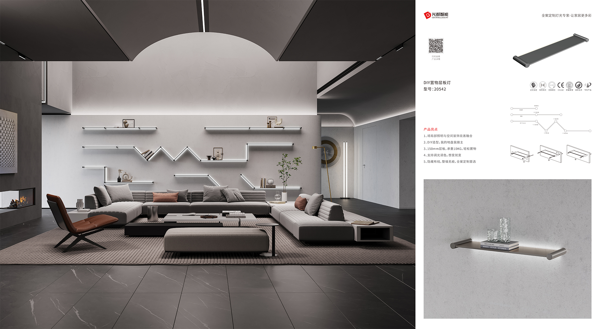 ▲ 全案定制燈光專家-光都20542置物層板燈