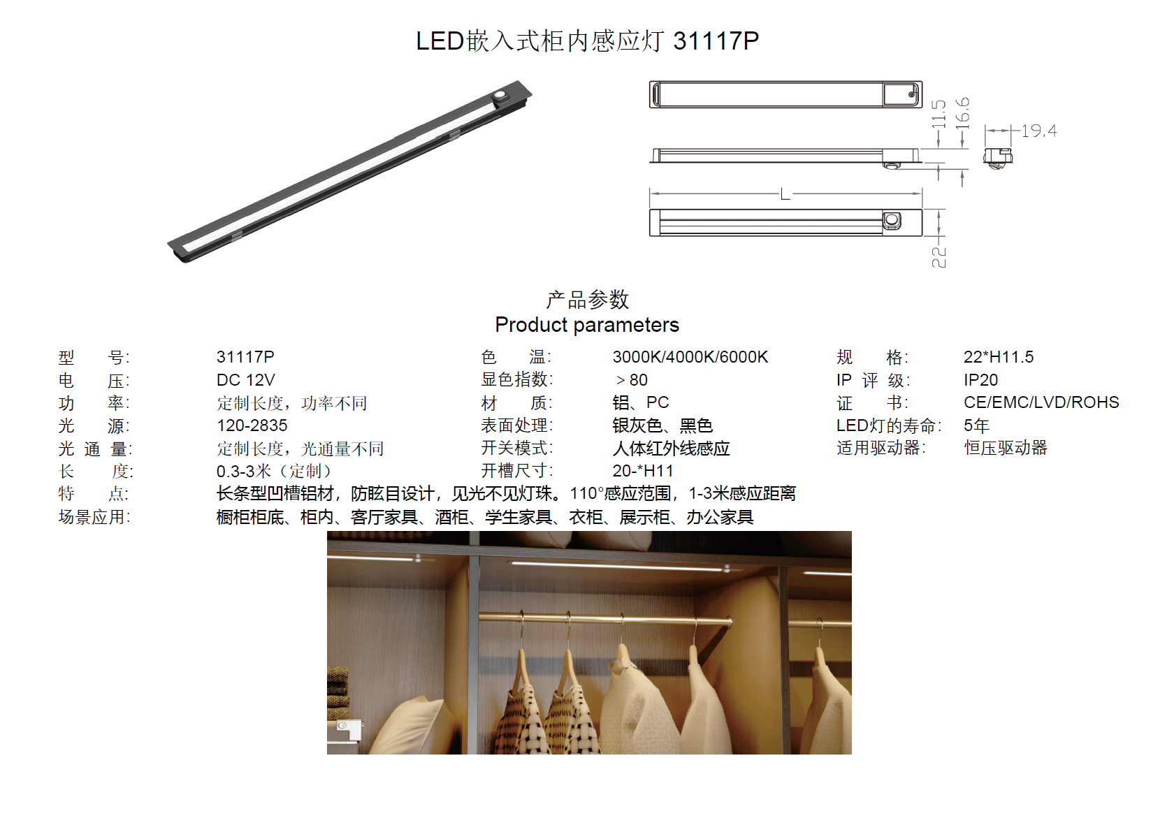 LED明裝式柜內(nèi)手掃感應(yīng)燈 20724M
