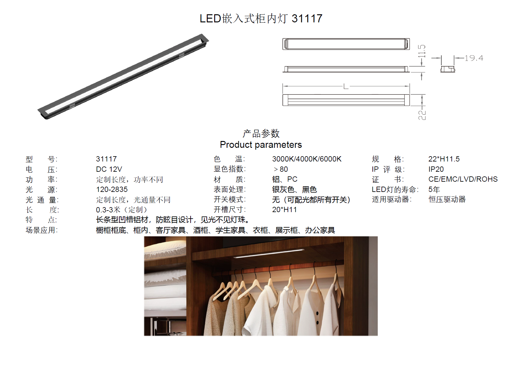 LED嵌入式柜內(nèi)人體紅外線感應(yīng)燈 31018P