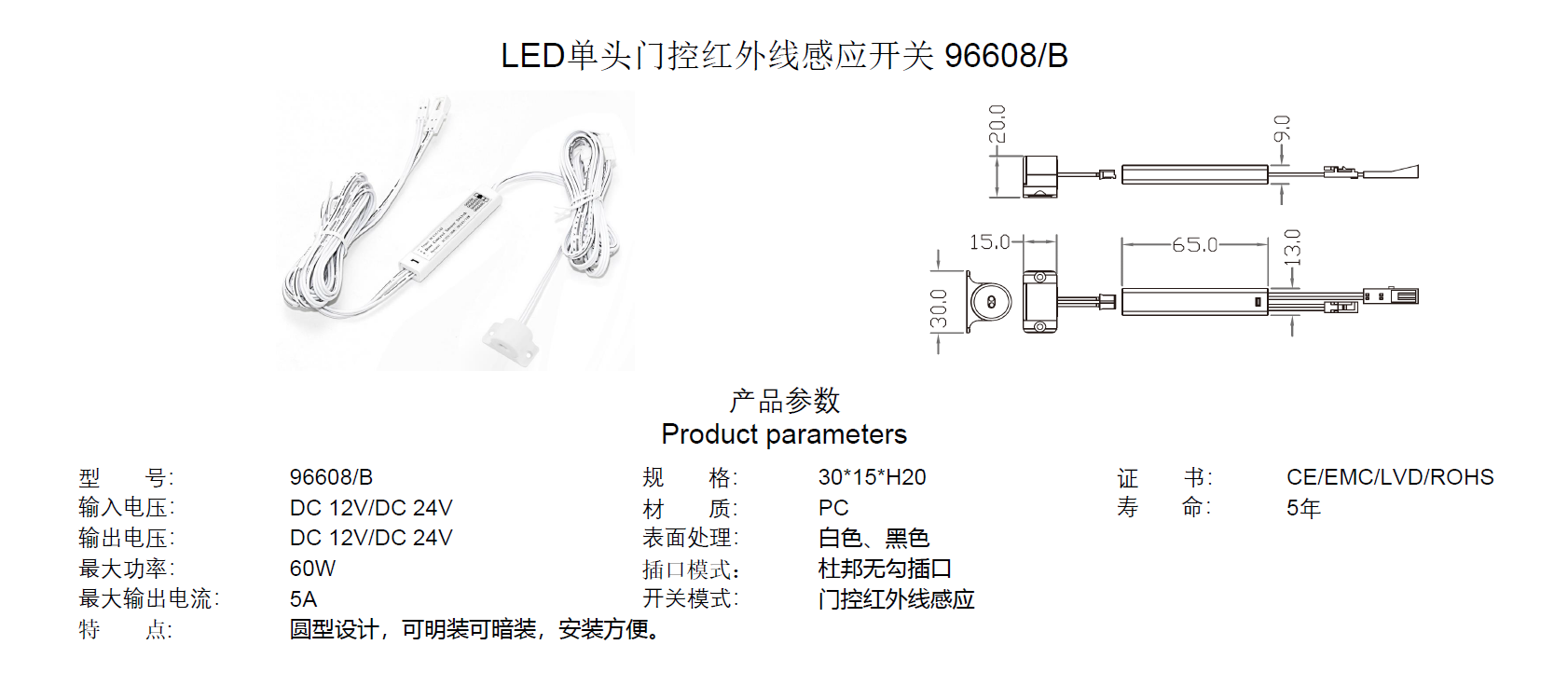 LED單頭門控紅外線感應(yīng)開關(guān) 96608S