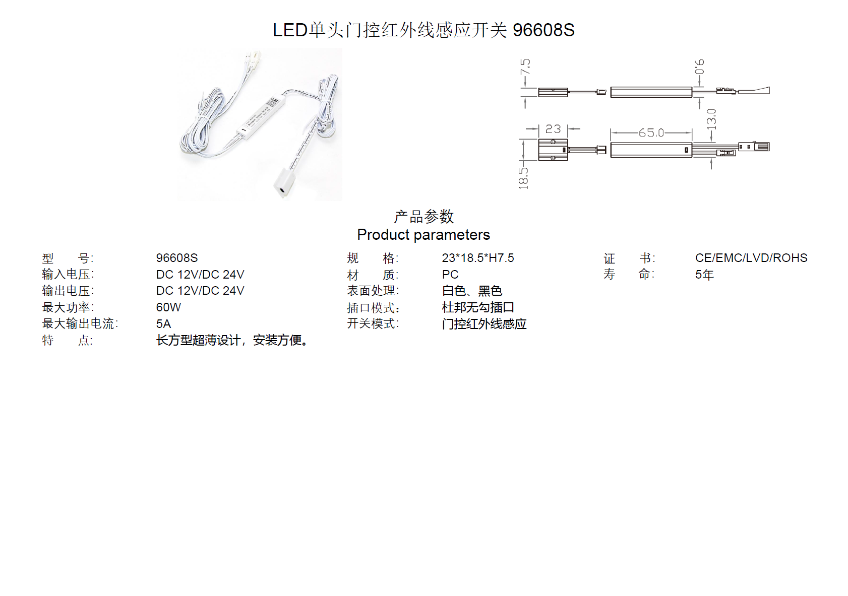 LED單頭門控紅外線感應(yīng)開關(guān) 96608C