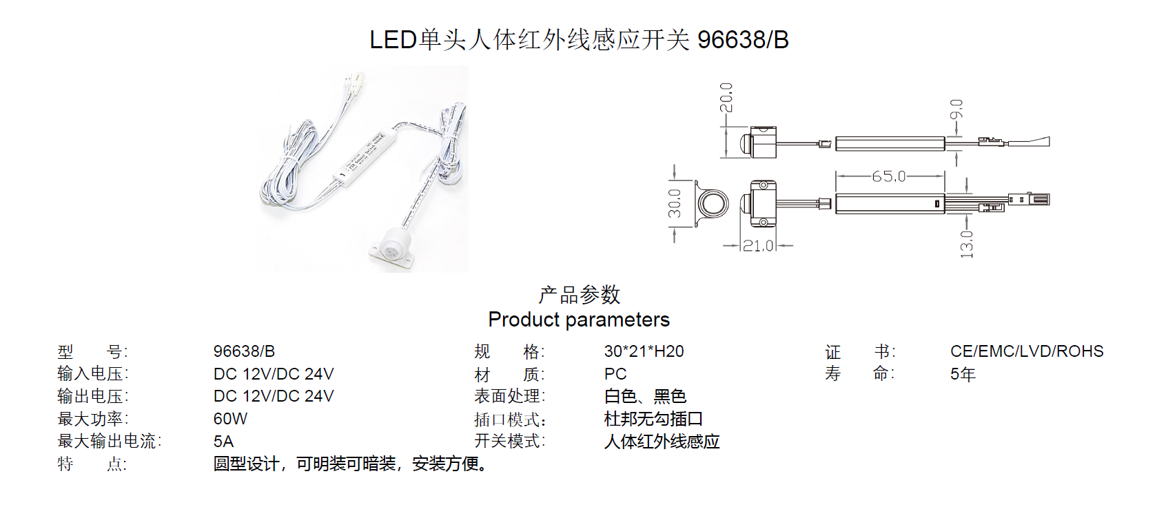 LED單頭人體紅外線感應(yīng)開關(guān) 96648P