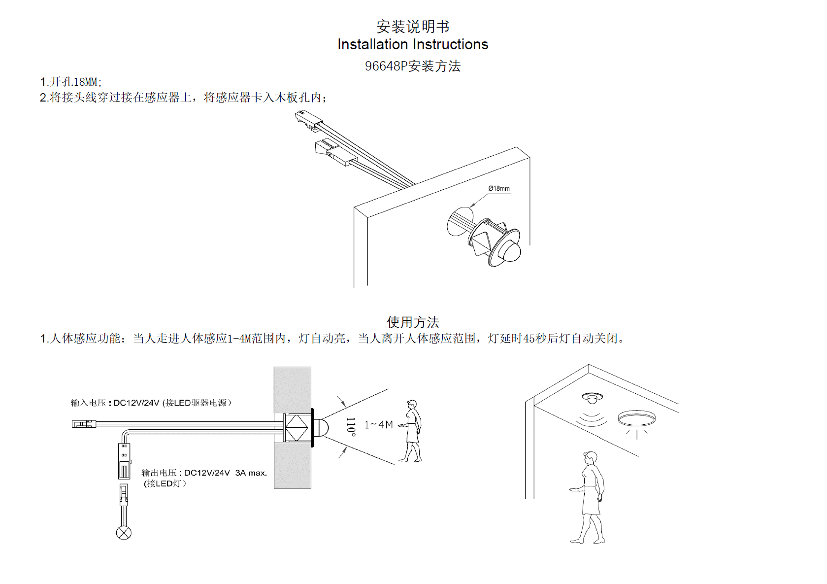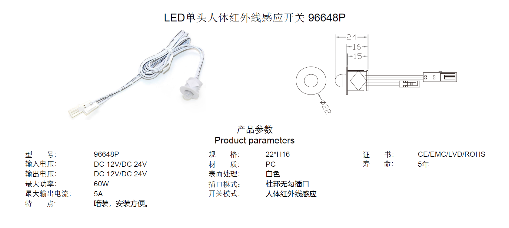 LED單頭人體紅外線感應(yīng)開關(guān) 96638/B