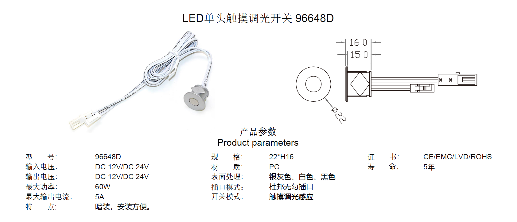 LED單頭觸摸調(diào)光開(kāi)關(guān) 96648D-B