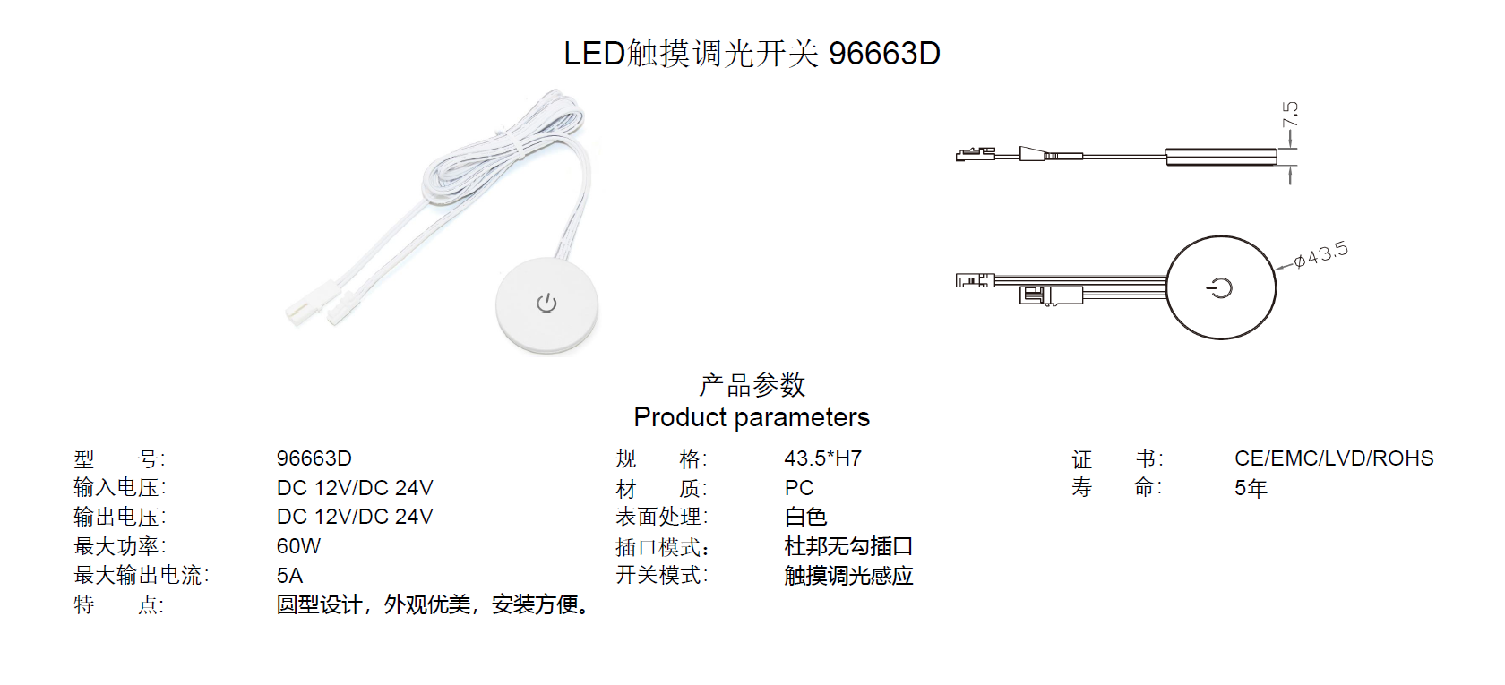 LED單頭觸摸調(diào)光開關(guān) 96648D