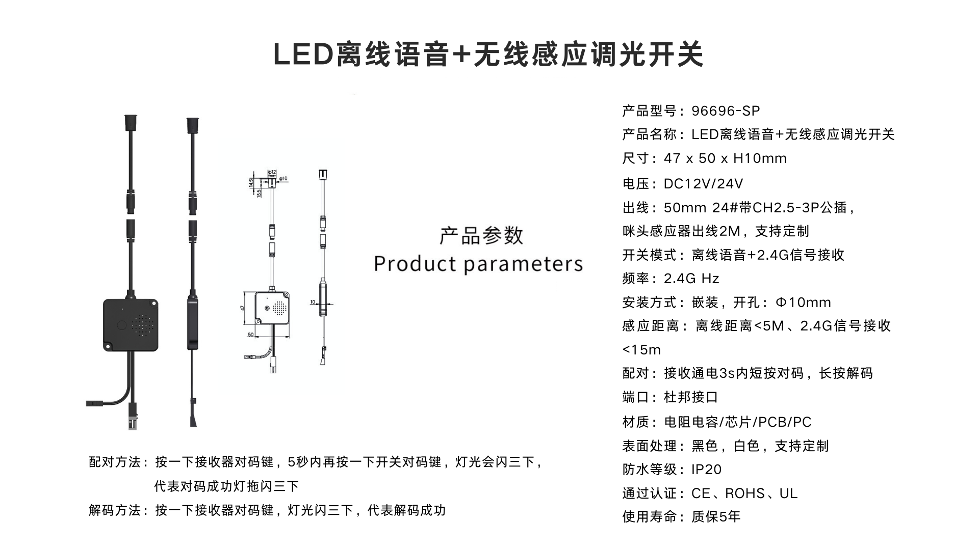 LED無線人體感應調(diào)光開關(單/雙色溫)96666PDS/96666PDC