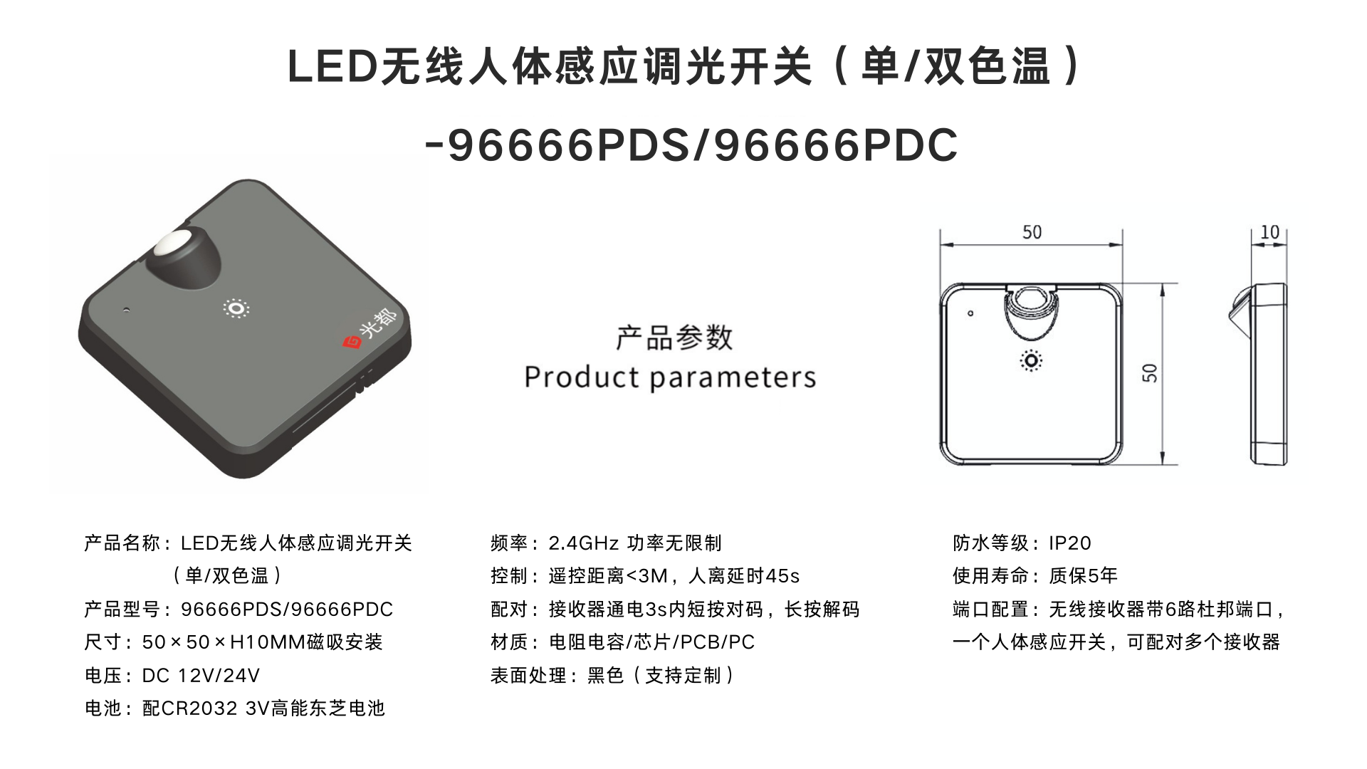 LED無線遙控調(diào)光開關(guān)(單/雙色溫)96660S/96660C