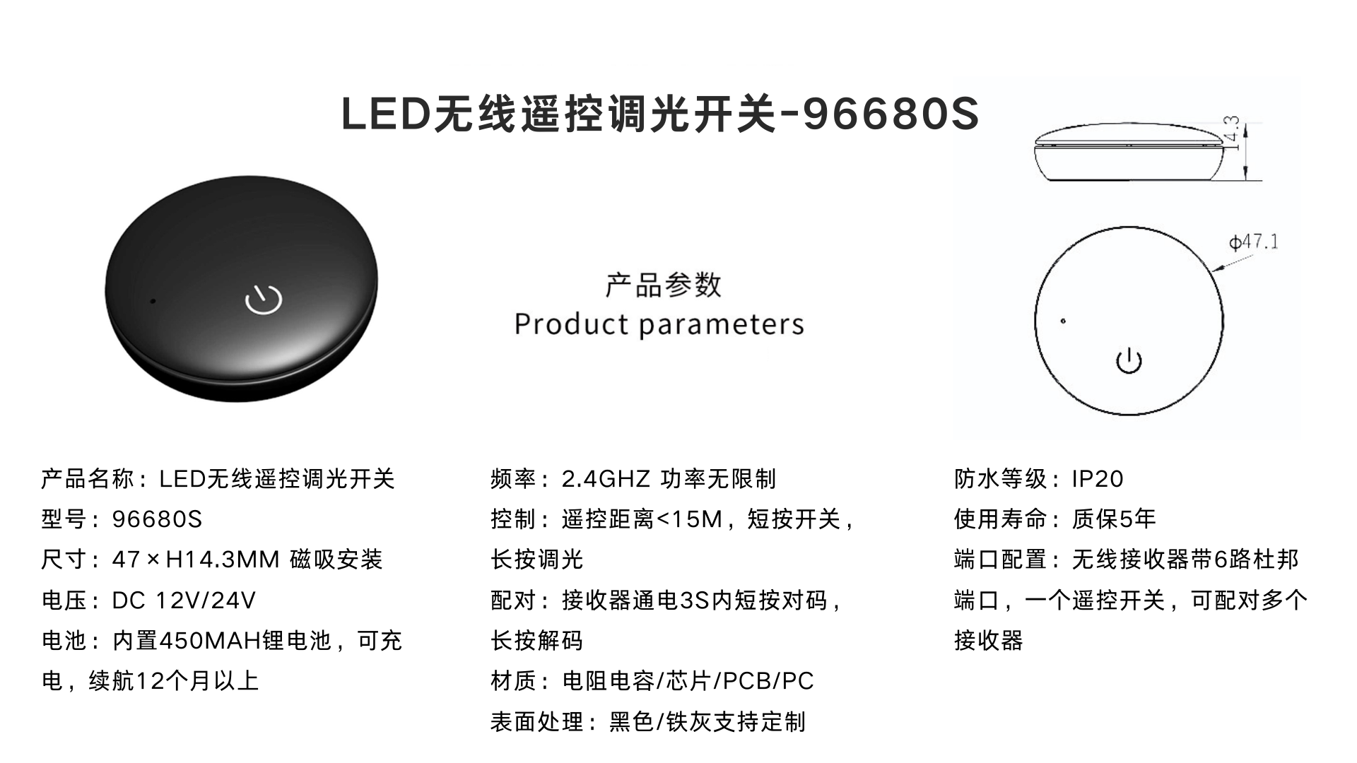 LED無線遙控調(diào)光開關(guān)(單/雙色溫)96660S/96660C